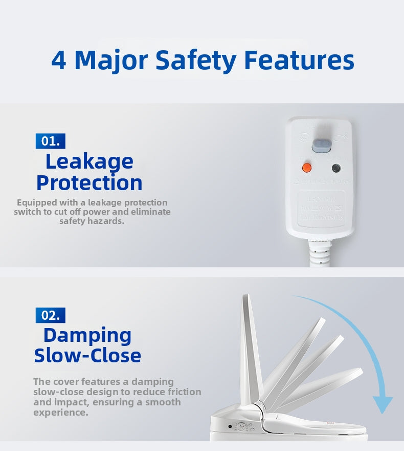 Safety & Plumbing: Power Outage Flush, IPX4 Water Resistance, Leakage Protection, and Built-in Check Valve (Anti-Siphon Valve).